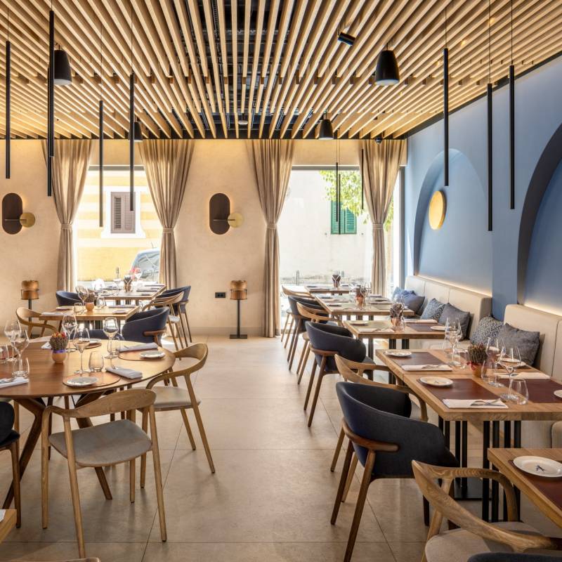 Restoran spaja tradicionalne dalmatinske okuse s modernim pristupom pripreme, pa na meniju možete pronaći teleću i janjetinu ispod peke, domaću tjesteninu, svježu riječnu ribu, aromatične plate i sezonske specijalitete.