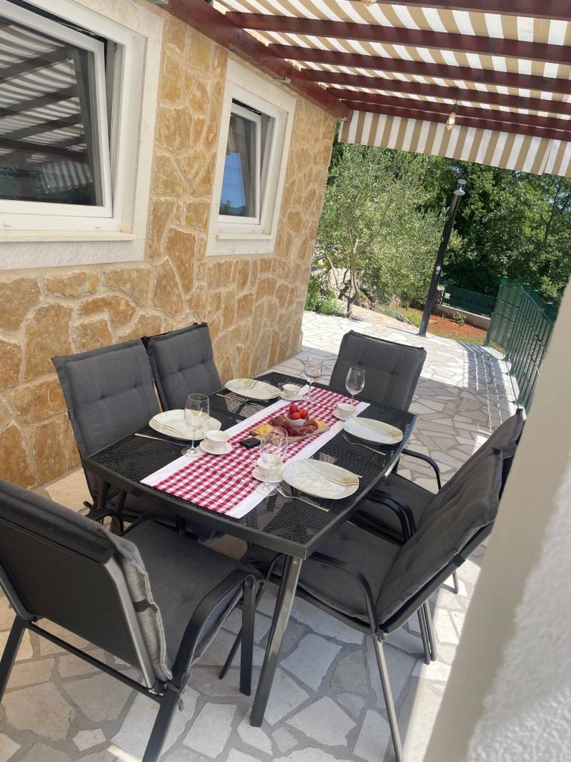 Smještena na prostranoj, potpuno ograđenoj parceli, ova vila odiše toplinom i gostoprimstvom. Građena u tradicionalnom dalmatinskom stilu, s pažljivo biranim detaljima i prirodnim materijalima, pruža osjećaj doma već na prvi pogled.