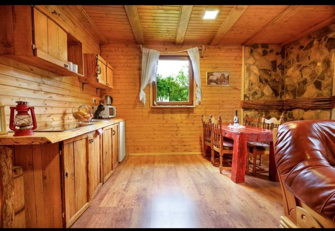 Drvena kuća nadomak Plitvičkih jezera, za 2-6 osoba, s tri odvojene smještajne jedinice. Privatni ulazi, spavaće sobe s kupaonicom, kuhinjom.