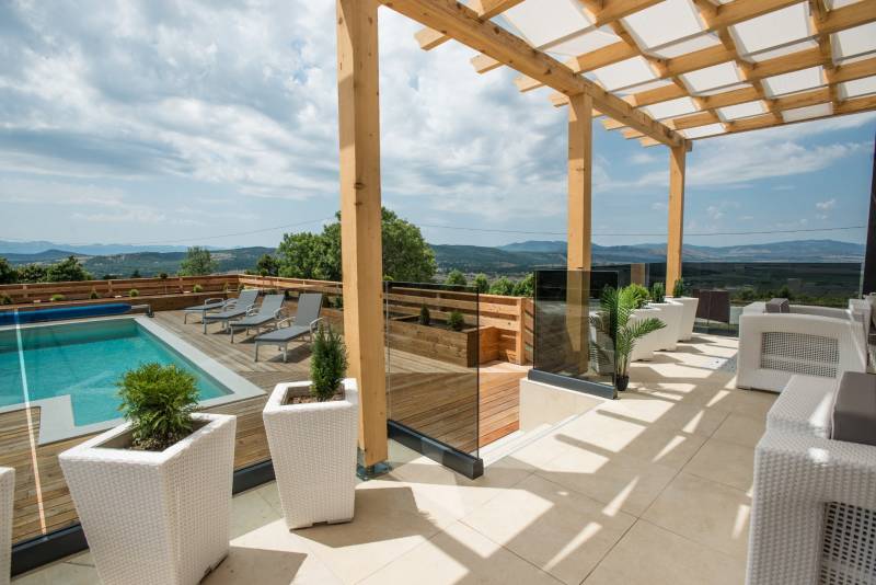 Vila ima prekrasan pogled prema Krbavsko polje i planini Velebit — što pruža neopisiv osjećaj mira i slobode.