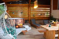 Provedite jutarnje trenutke u miru na prostranoj terasi, opustite se i uživajte u prekrasnom pogledu na šumu iz jacuzzija. Nakon dana punog istraživanja i aktivnosti, nema ništa boljeg od opuštanja u istom. Uživajte u nježnoj masaži vodenih mlaznica koje oslobađaju napetost u mišićima i poboljšavaju cirkulaciju, sve dok se vaše brige ne istope u toplim, umirujućim vodama.