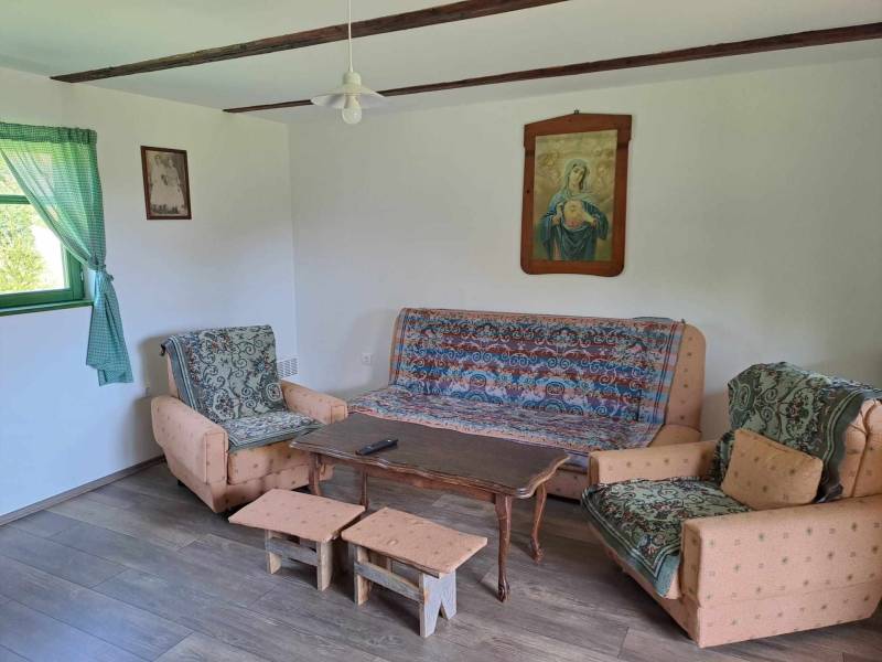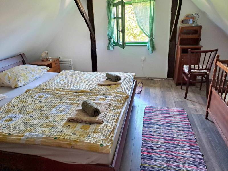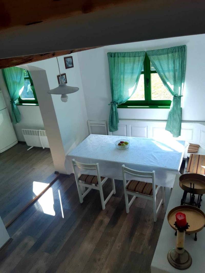 Tradicionalna starinska drvena kuća smještena u brdima iznad rijeke Mrežnice na samom kraju malenog izoliranog sela okružena šumom i prostranim livadama. Opremljena je starinskim autohtonim namještajem, ali je ugodna i funkcionalna.