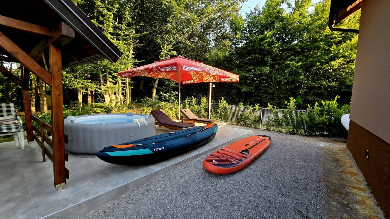 Vikendica Studio apartman MiMa nalazi se samo 8 km od centra Karlovca, smještena uz rijeku Koranu. Ako Vam je dosta gradske gužve i poslovnih obveza dođite i odmorite se u prirodnom okruženju. Svoju prvu jutarnju kavu popijte ispod sjenice sa pogledom na rijeku Koranu i uz cvrkut ptica. U koliko ste ljubitelj prirode i istraživanja koristite kanu za 3 osobe i SUP dasku, kao i staze za šetnju u obližnjim šumama. Osiguran je grijani jacuzzi sa ležaljkama gdje se možete opustiti nakon dnevnih aktivnosti.