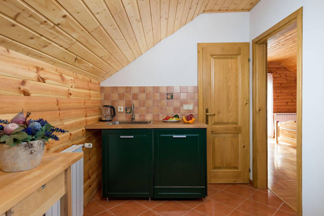 Kuća se sastoji od tri etaže i dodatnog objekta sa SPA zonom. Okružena je zelenilom i nepreglednim šumama te poziva na netaknuti odmor daleko od gradske buke i intenziteta modernog života. Zimi je okolina prekrivena snijegom i pruža veliki užitak i zabavu kako odraslima tako i djeci.